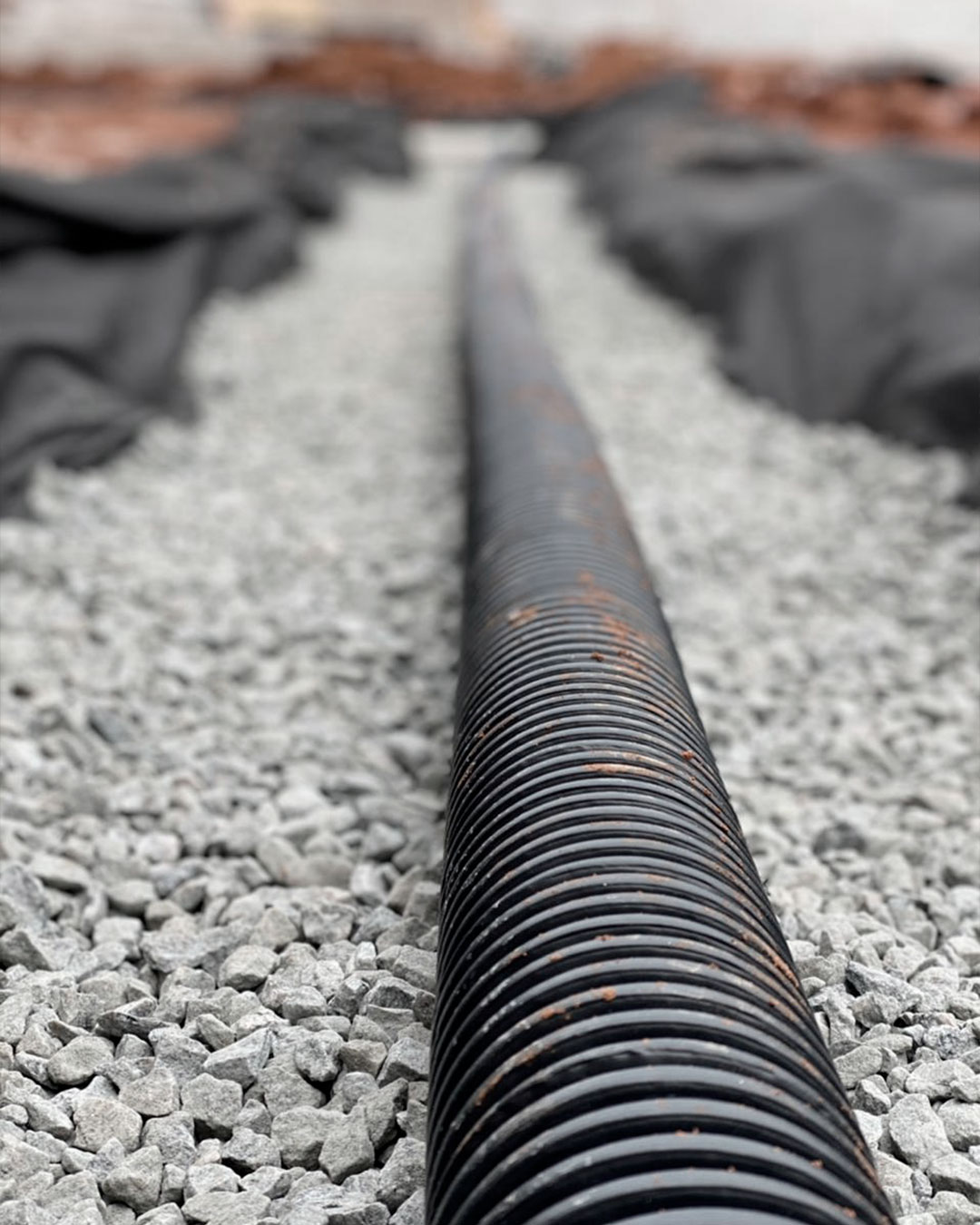 Sua estrutura permite a livre circulação da água, ao mesmo tempo que impede a saída de finos do solo, evitando o entupimento dos sistemas de drenagem.